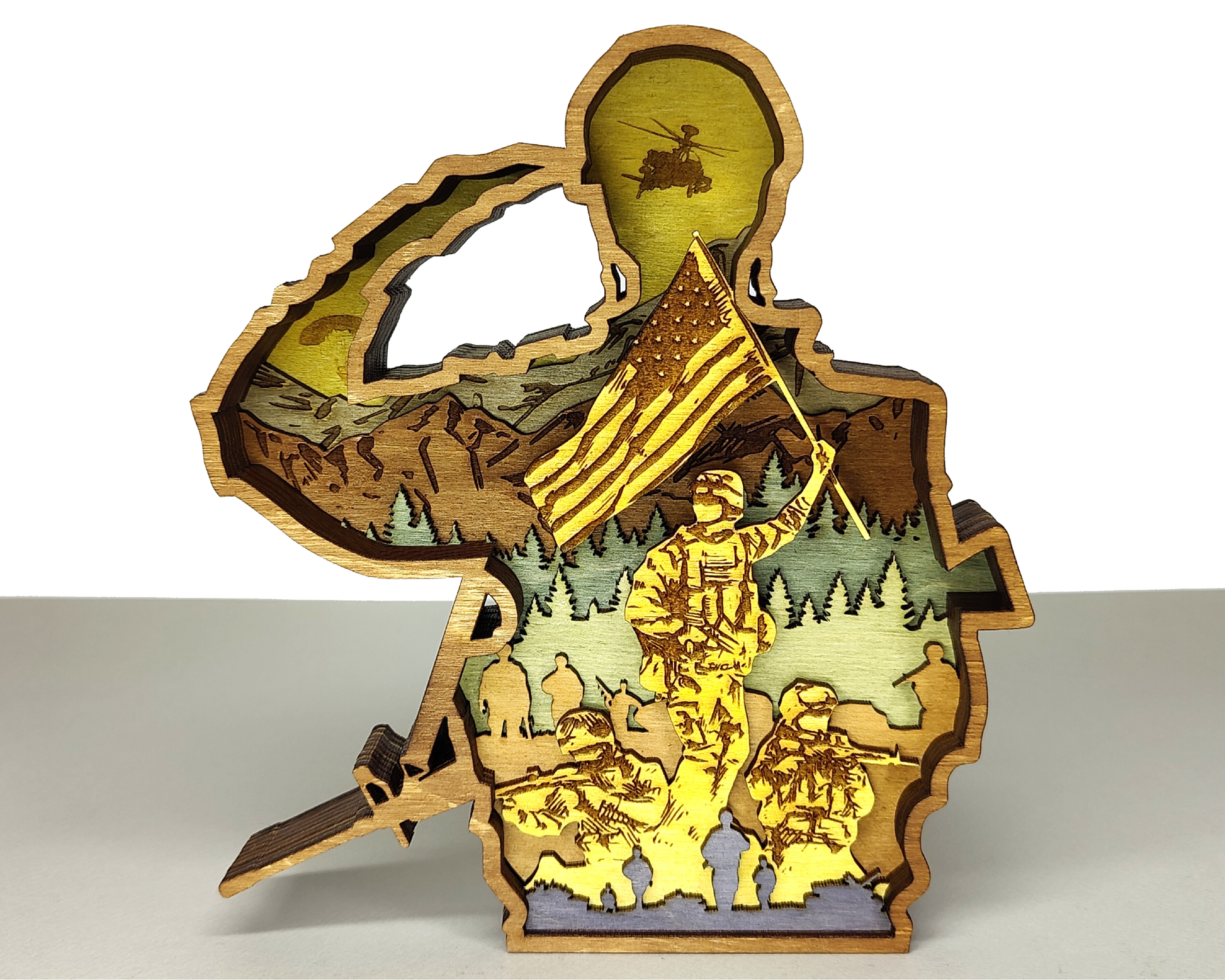 Made out of Basswood, this piece is very popular for our veterans, and loved ones still active in the military. Available in several sizes.